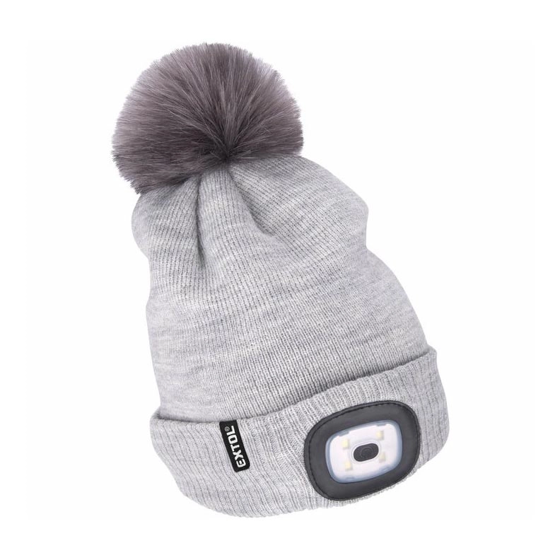 Extol - Gorro com uma lanterna de cabeça e carregador USB 300 mAh cinzento com pompom tamanho UNI