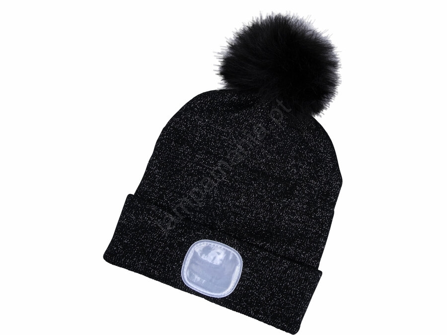 Extol - Gorro com uma lanterna de cabeça e carregador USB 300 mAh preto com pompom tamanho UNI