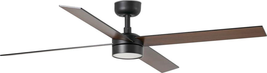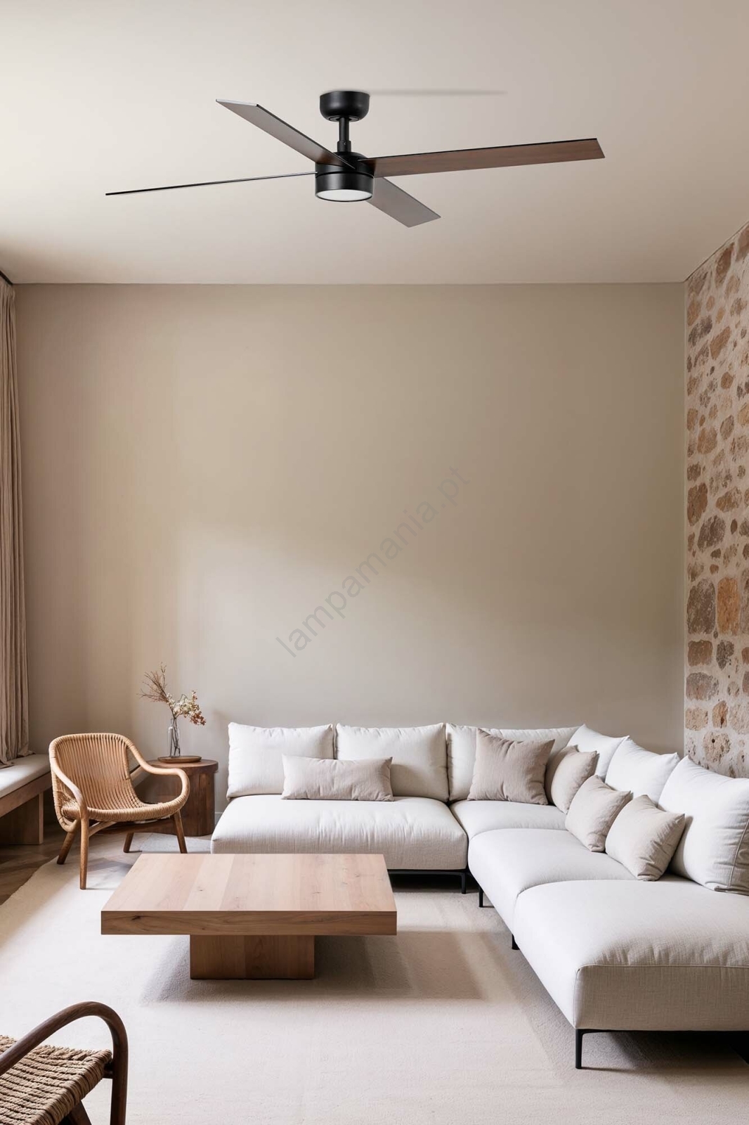 • As pás do ventilador são reversíveis (preto mate, nogueira escura).