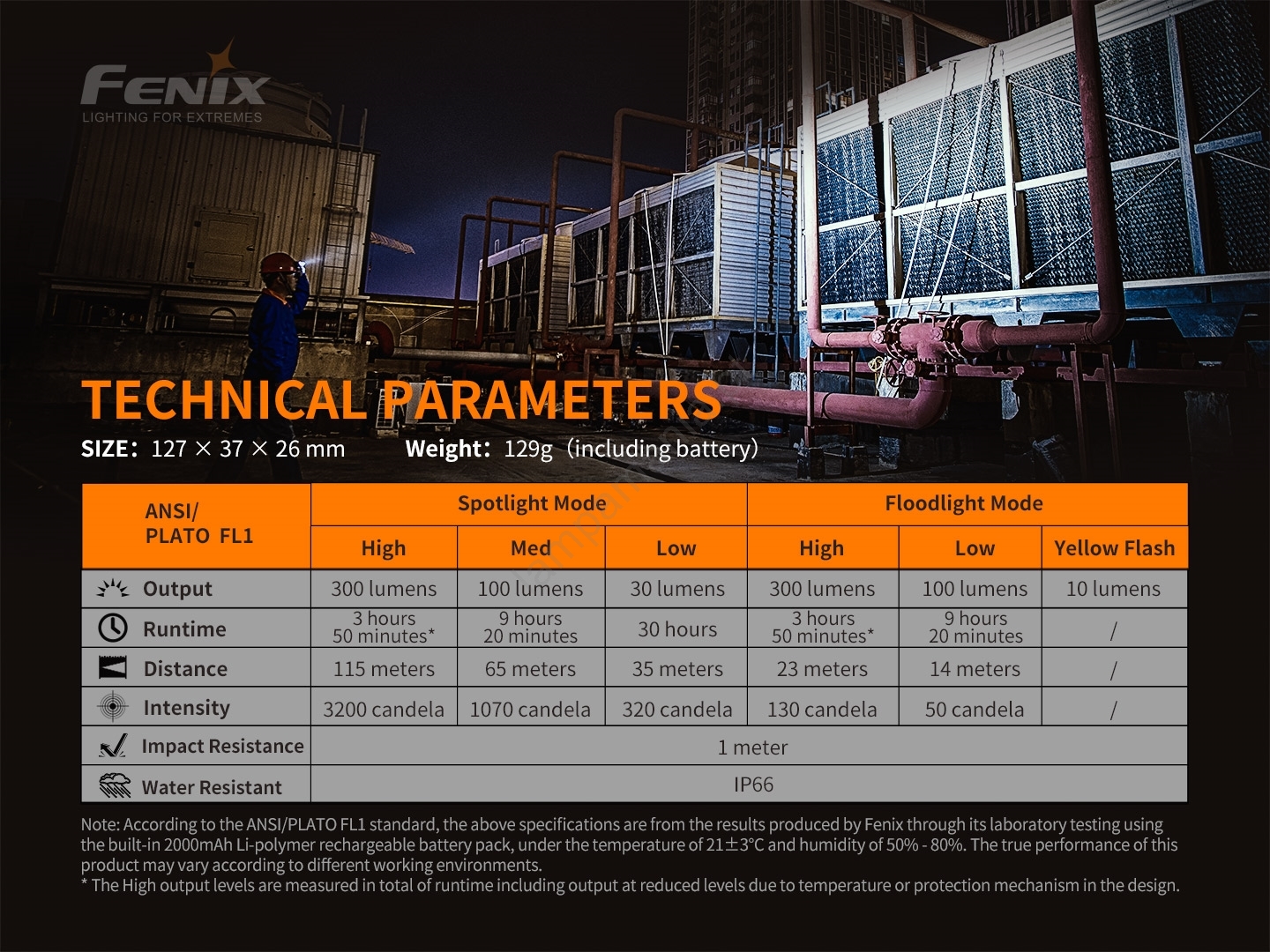 • A lanterna é resistente a quedas de até 1 metro, à prova de poeira e à prova d'água (imersão de 2 m).