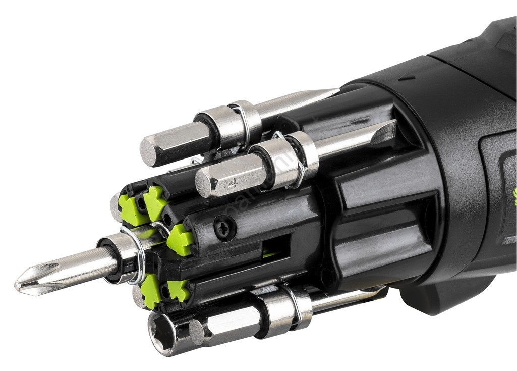 • Chave de fenda AKU com cabeça e 6 bits em braços rotativos.