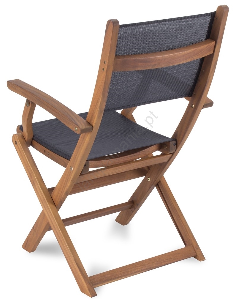 • Cadeira de jardim dobrável feita de madeira de acácia tropical.