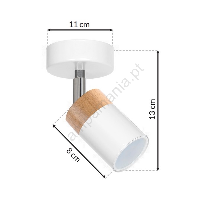 Foco JOKER WHITE WOOD 1xGU10/8W/230V caracteriza-se por um design agradável e funcional.  Uma lâmpada com casquilho GU10 é adequada para a iluminação Aqui, pode comprar outras lâmpadas a preços vantajosos. Terá um complemento interessante para a sua casa.