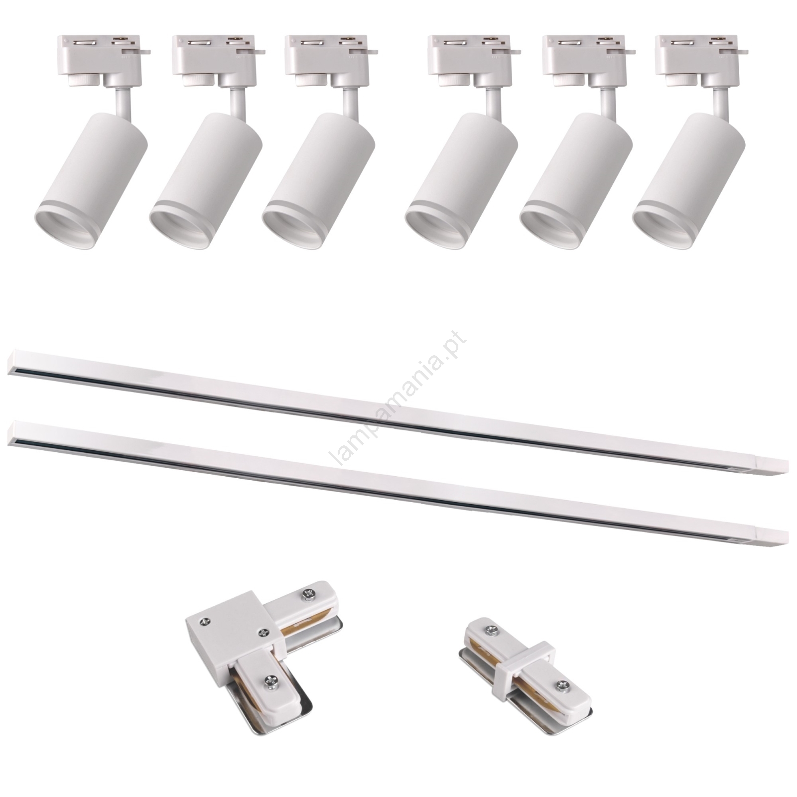 Foco para sistema de carril PARIS 6xGU10/10W/230V + 2x1 m sistema de carril branco