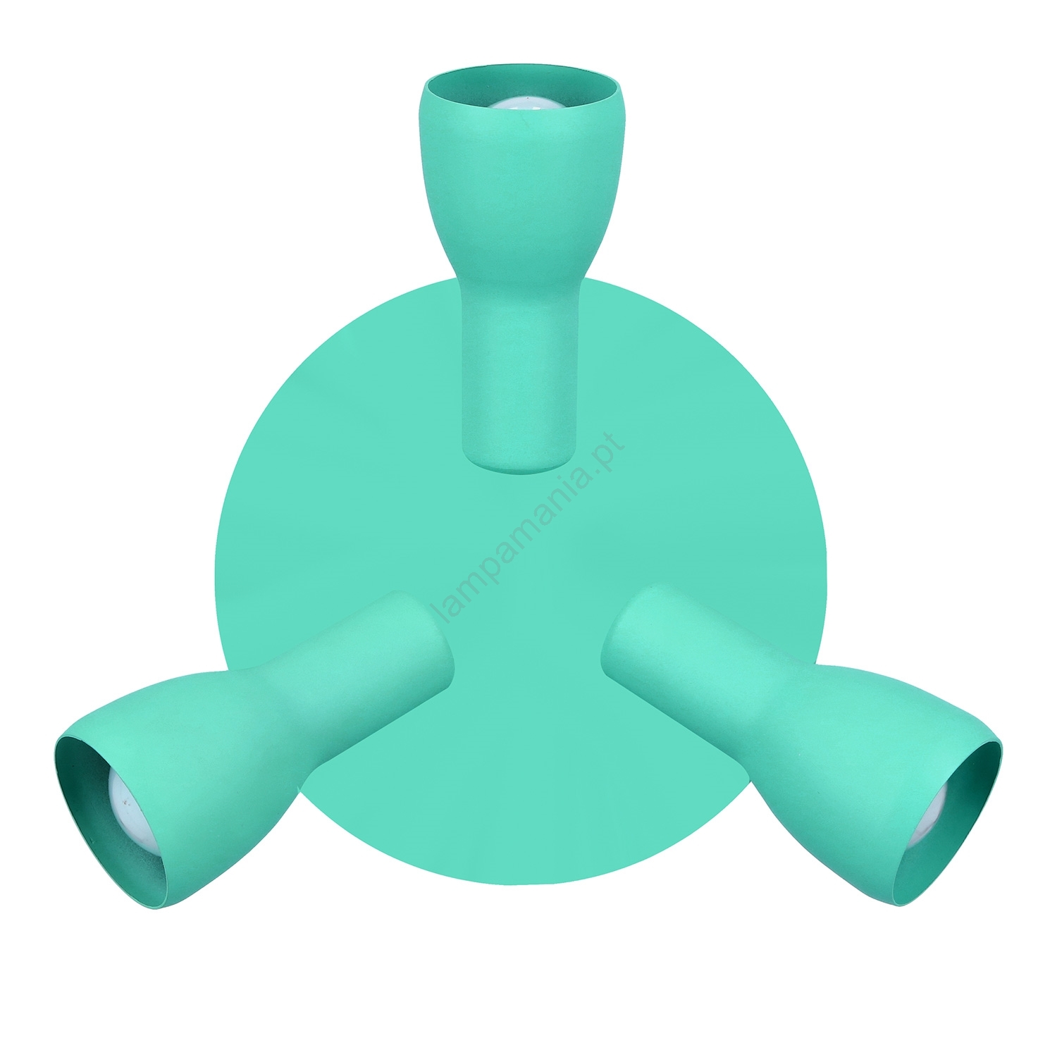 Foco PICARDO 3xE14/40W/230V turquesa caracteriza-se por um design agradável e funcional.  Uma lâmpada com casquilho E14 é adequada para a iluminação Aqui, pode comprar outras lâmpadas a preços vantajosos. Terá um complemento interessante para a sua casa.