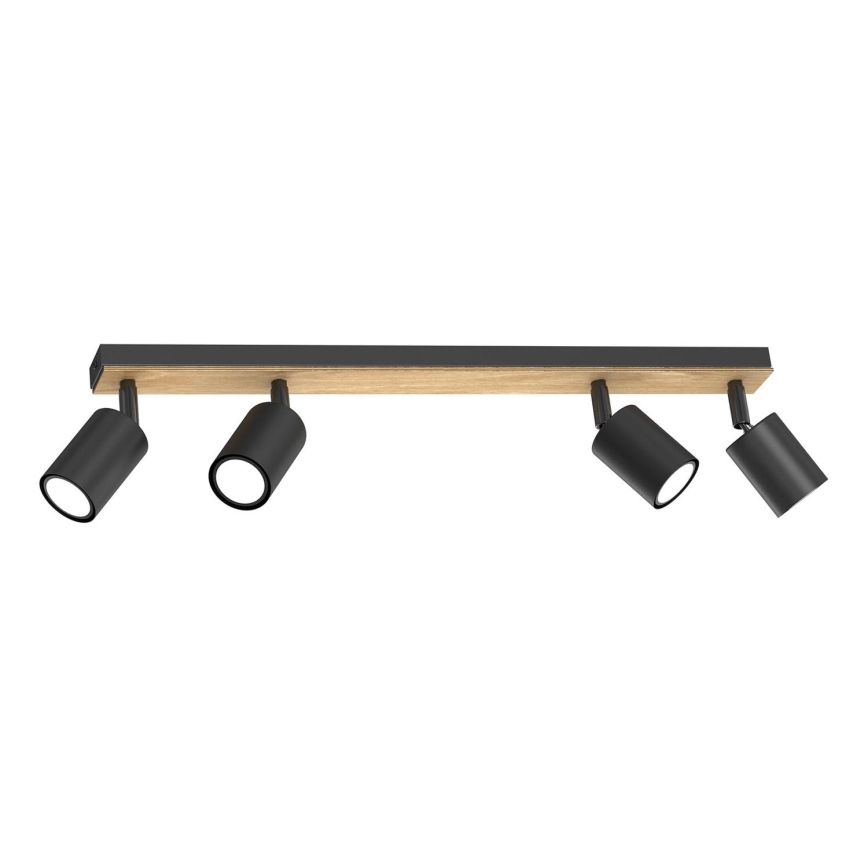 Foco TULON 4xGU10/8W/230V preto/carvalho caracteriza-se por um design agradável e funcional.  Uma lâmpada com casquilho GU10 é adequada para a iluminação Aqui, pode comprar outras lâmpadas a preços vantajosos. Terá um complemento interessante para a sua casa.