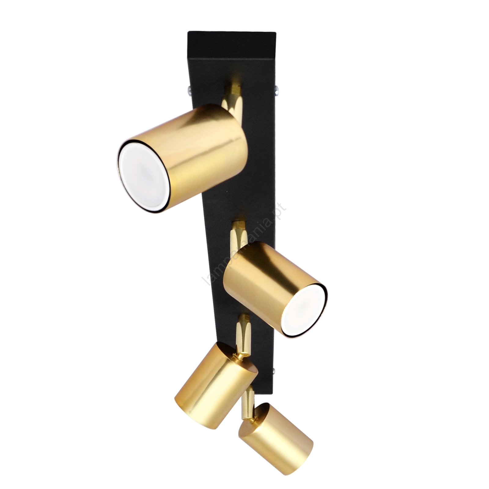 LED Foco TUNE 4xGU10/4,8W/230V dourado/preto caracteriza-se por um design agradável e funcional.  Uma lâmpada com casquilho GU10 é adequada para a iluminação Aqui, pode comprar outras lâmpadas a preços vantajosos. Terá um complemento interessante para a sua casa.