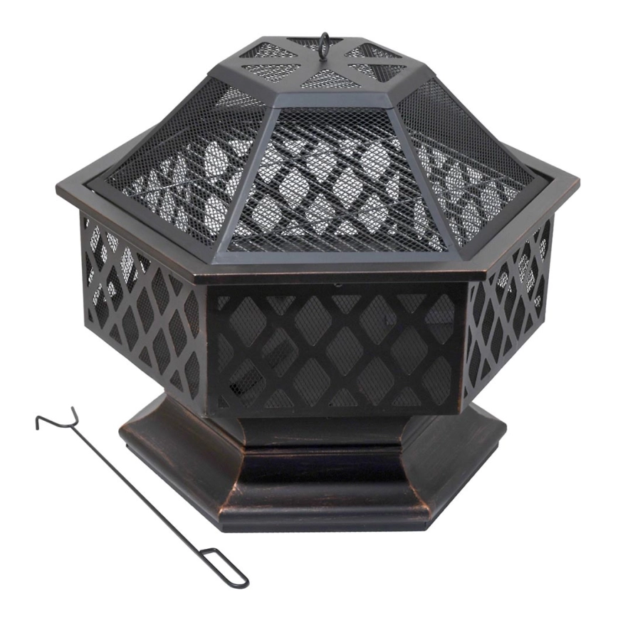 • Fogueira de madeira portátil HEXAGON, com construção hexagonal adequada para terraços e jardins.