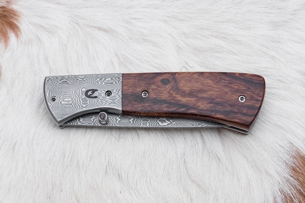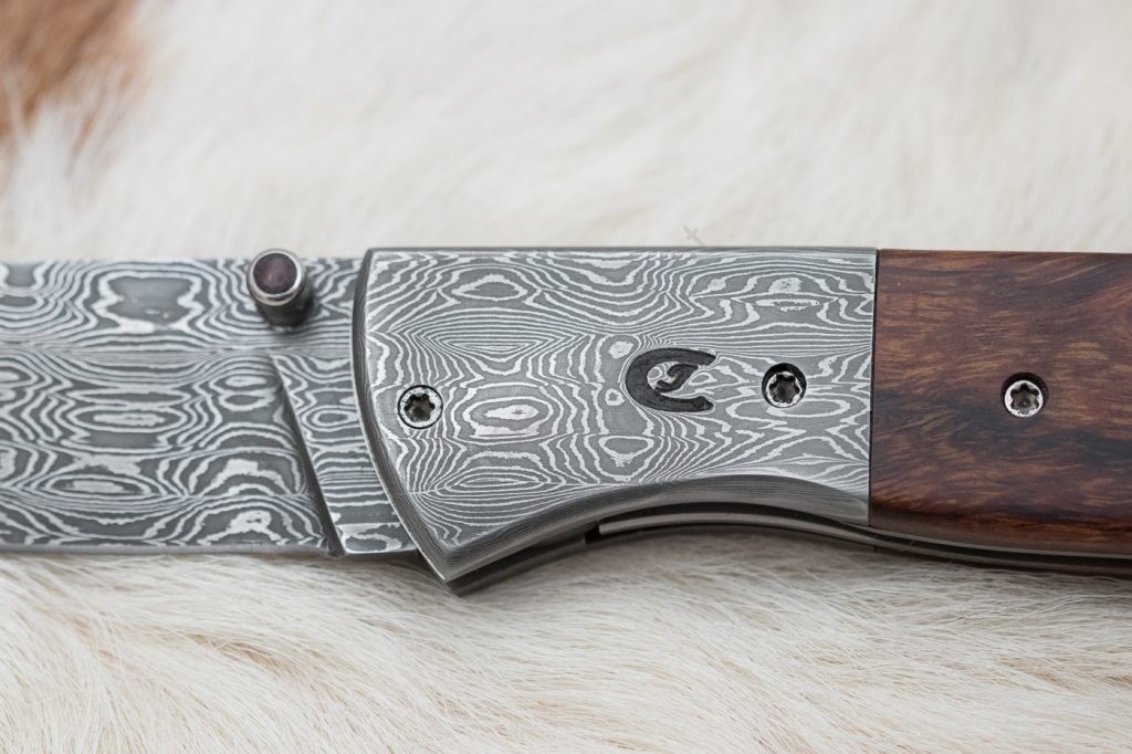Jiří Čurda - faca dobrada em damasco, ironwood.