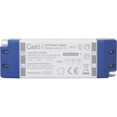 Fonte de alimentação comutada para fitas LED 80W/12V IP20