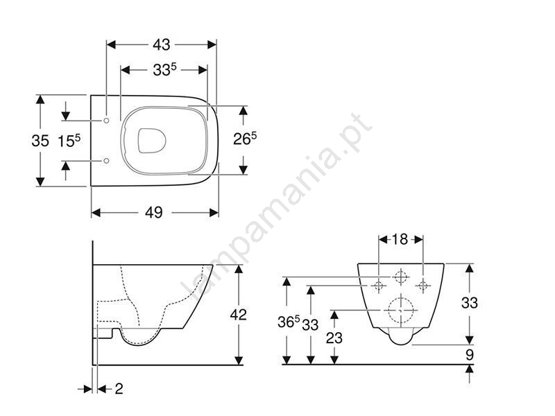 • Sanita suspensa com forma fechada e projeção curta.