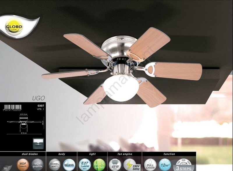 • Globo - Ventilador de teto 1xE27/60W/230V