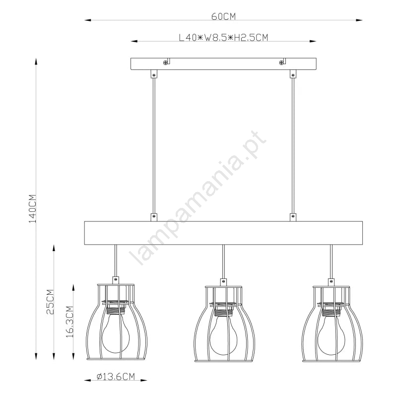 • Globo - Candelabro suspenso 3xE27/60W/230V