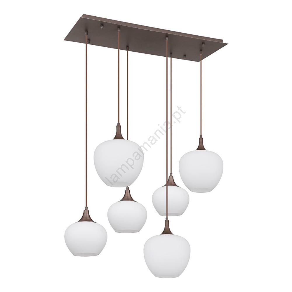 • Globo - Lustre suspenso por cabo 6xE27/40W/230V, acabamento cobre
