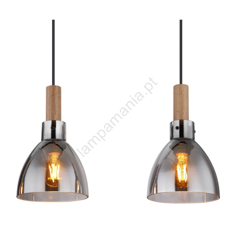 Globo 15550-4H - Lustre suspenso por cabo MATTEA 4xE27/6W/230V preto/fumê caracteriza-se por um design agradável e funcional.  Uma lâmpada com casquilho E27 é adequada para a iluminação Aqui, pode comprar outras lâmpadas a preços vantajosos. Terá um complemento interessante para a sua casa.
