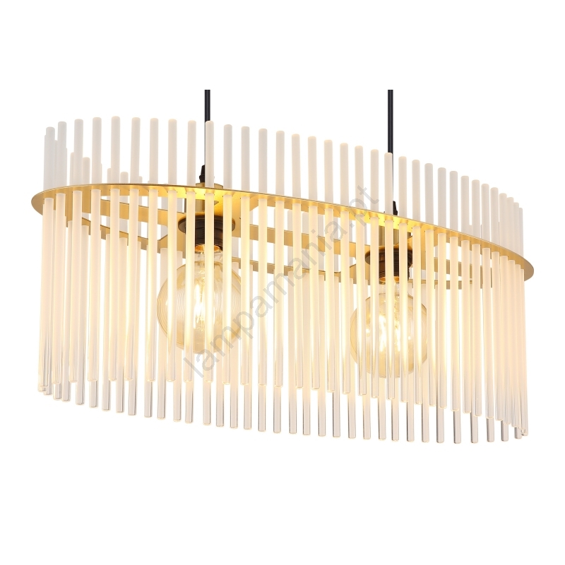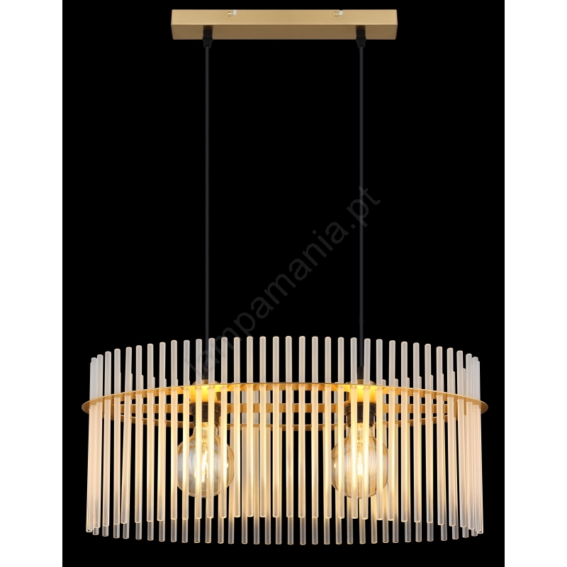 Globo - Candeeiro suspenso 2xE27/60W/230V dourado caracteriza-se por um design agradável e funcional.  Uma lâmpada com casquilho E27 é adequada para a iluminação Aqui, pode comprar outras lâmpadas a preços vantajosos. Terá um complemento interessante para a sua casa.