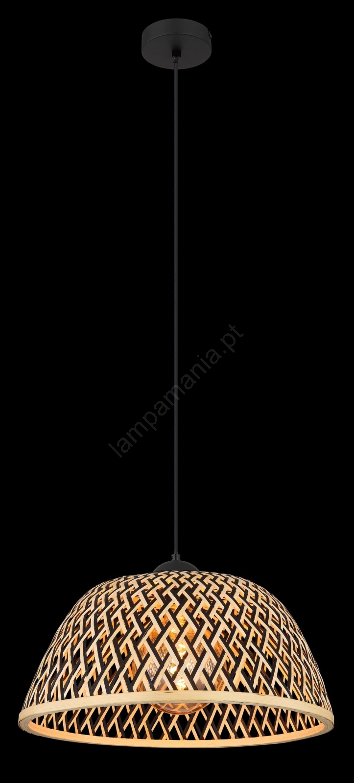 Globo - Candelabro suspenso 1xE27/15W/230V bambu caracteriza-se por um design agradável e funcional.  Uma lâmpada com casquilho E27 é adequada para a iluminação Aqui, pode comprar outras lâmpadas a preços vantajosos. Terá um complemento interessante para a sua casa.