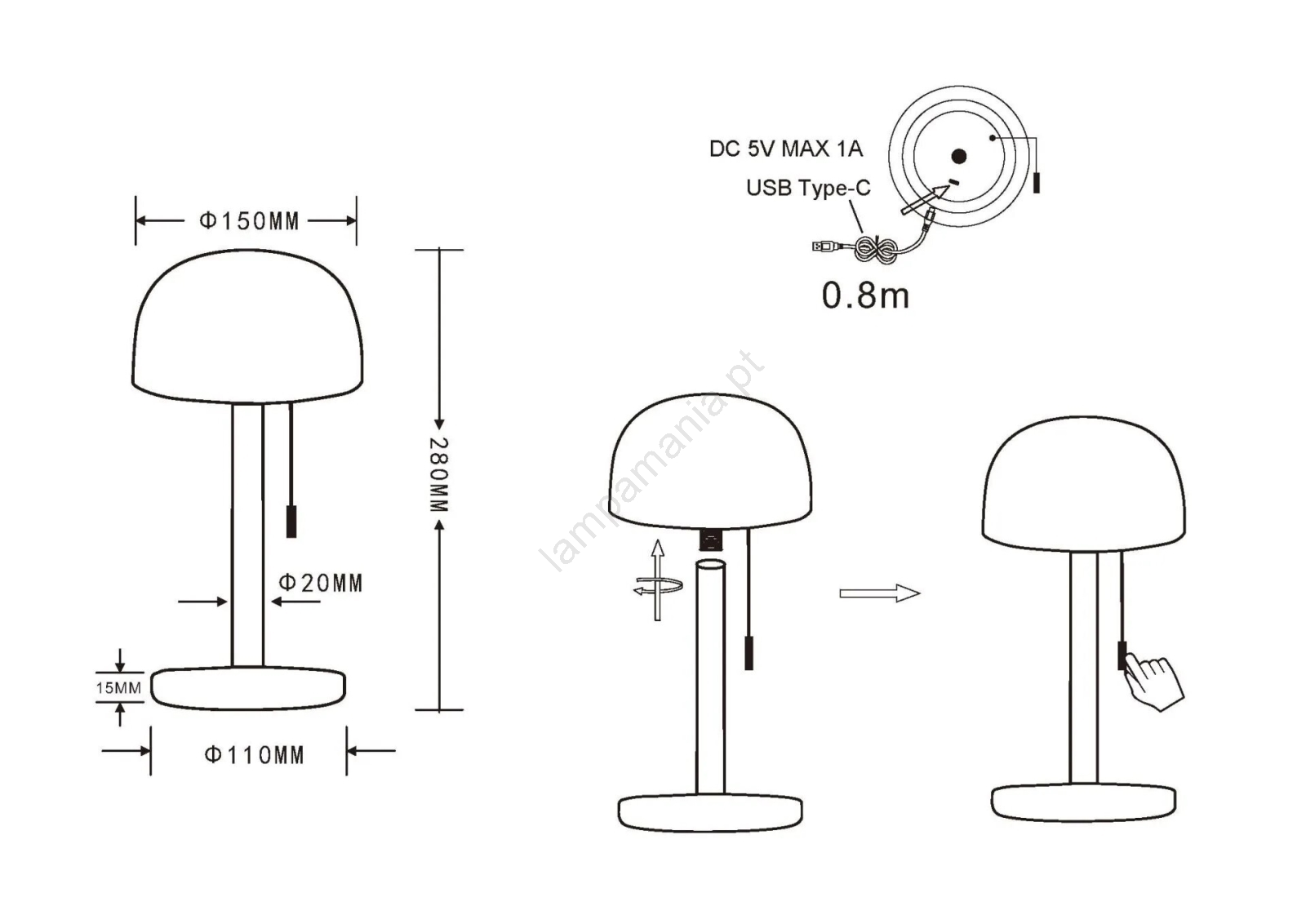 • Globo - Lâmpada de mesa recarregável LED/1,5W/3,7V 3000/4200/6000K 1800mAh castanha