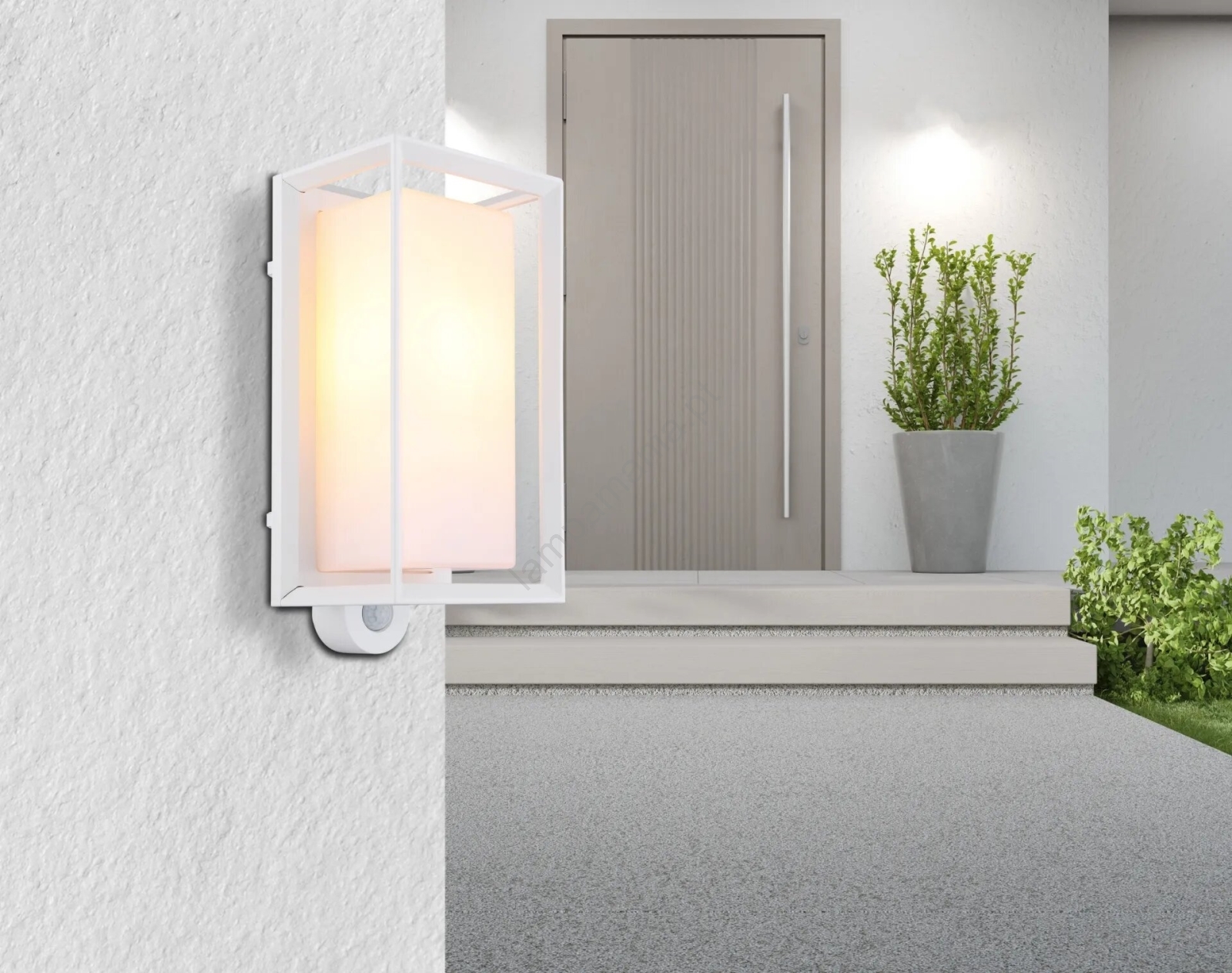 • Luminária de parede externa com sensor de movimento.