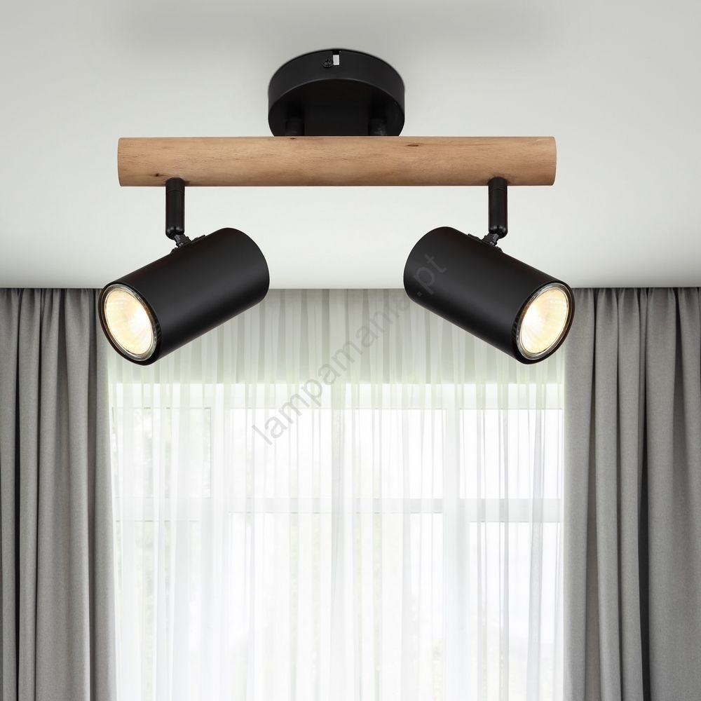 Globo - Foco 2xGU10/5W/230V madeira/metal caracteriza-se por um design agradável e funcional.  Uma lâmpada com casquilho GU10 é adequada para a iluminação Aqui, pode comprar outras lâmpadas a preços vantajosos. Terá um complemento interessante para a sua casa.