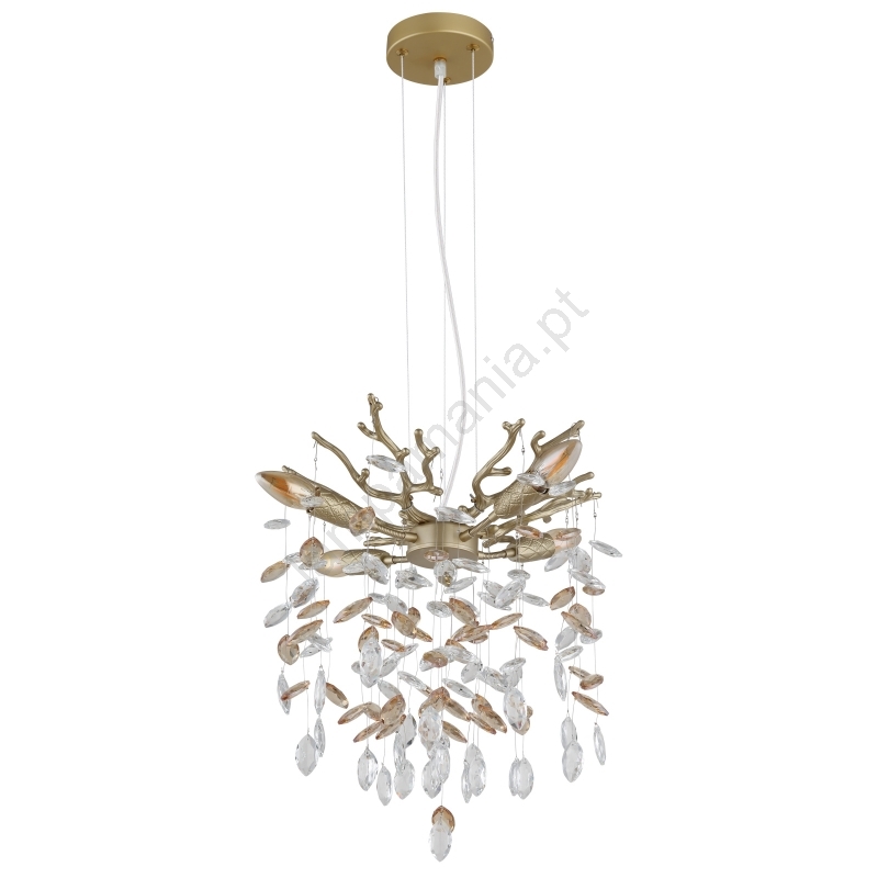 Globo - Lustre suspenso por cabo 4xE14/40W/230V dourado caracteriza-se por um design agradável e funcional.  Uma lâmpada com casquilho E14 é adequada para a iluminação Aqui, pode comprar outras lâmpadas a preços vantajosos. Terá um complemento interessante para a sua casa.
