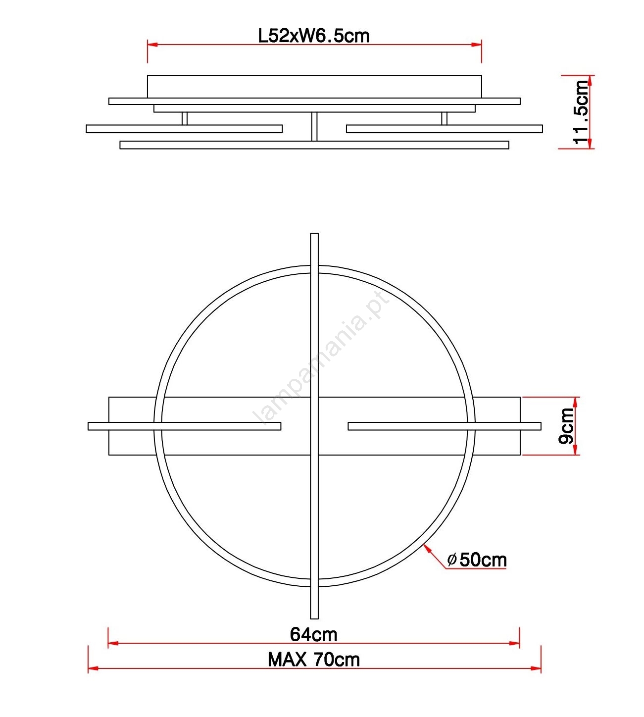 • Os braços giratórios e o painel LED circular interno são controlados separadamente por um interruptor de parede tradicional.