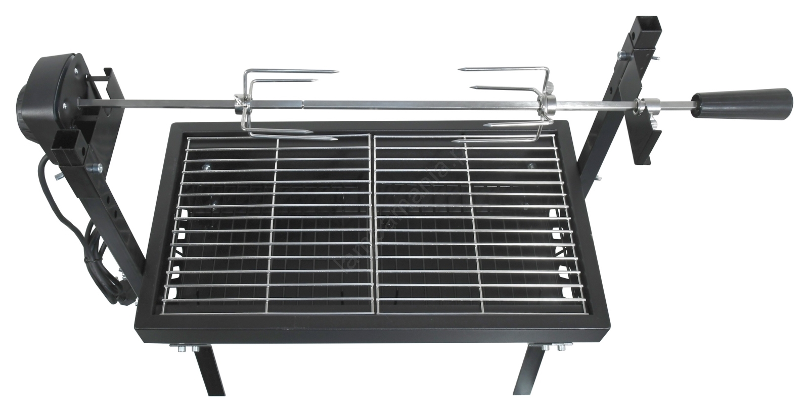 • O grelhador está equipado com um motor potente com uma fonte de alimentação de 230V para virar os alimentos a 2 rpm.
