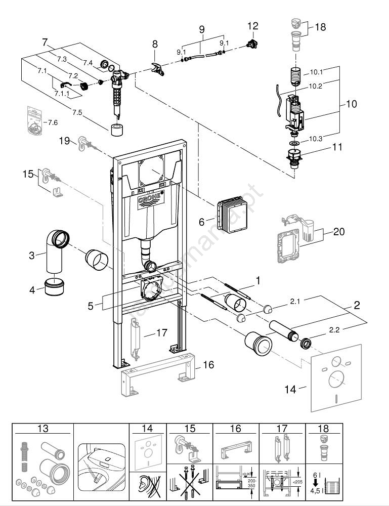 • A tecnologia GROHE Whisper reduz a transmissão de ruído para divisões adjacentes durante a descarga.