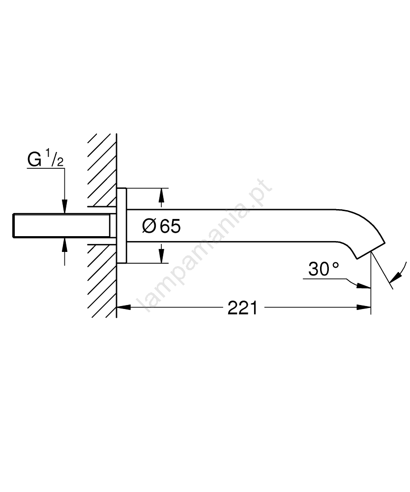 • Comprimento do bocal de 221 mm para enchimento confortável da banheira.