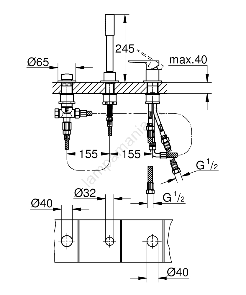 GROHE 19965001 - Misturador de banheira de três furos LINEARE, cromo brilhante