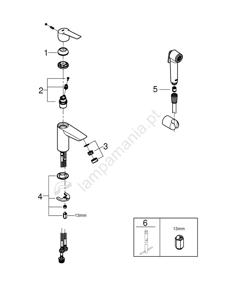 • Aerador economizador GROHE Water Saving com caudal de 5,7 l/min para utilização eficiente da água.