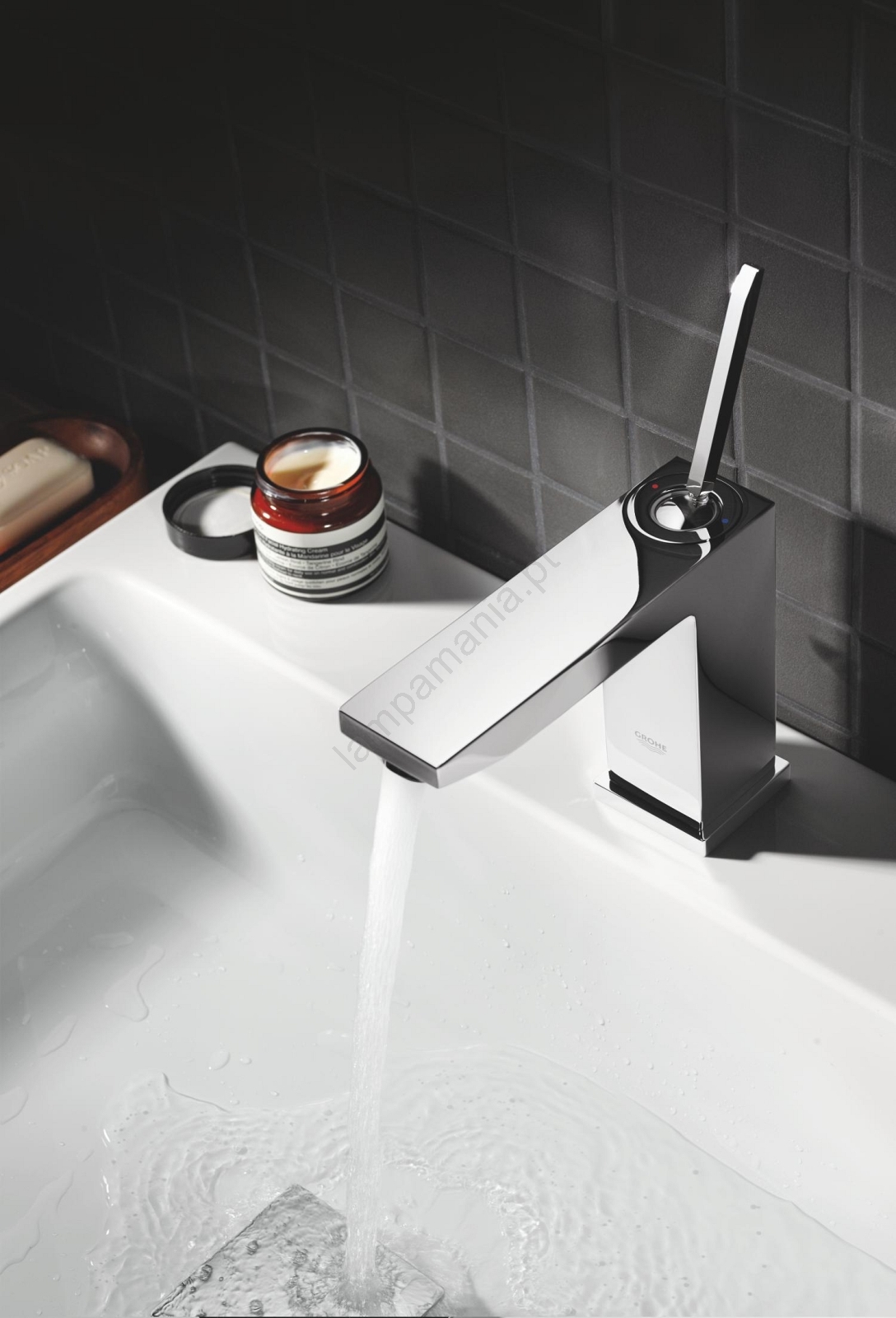 • Alavanca metálica com cartucho joystick GROHE FeatherControl para controlo suave e preciso.