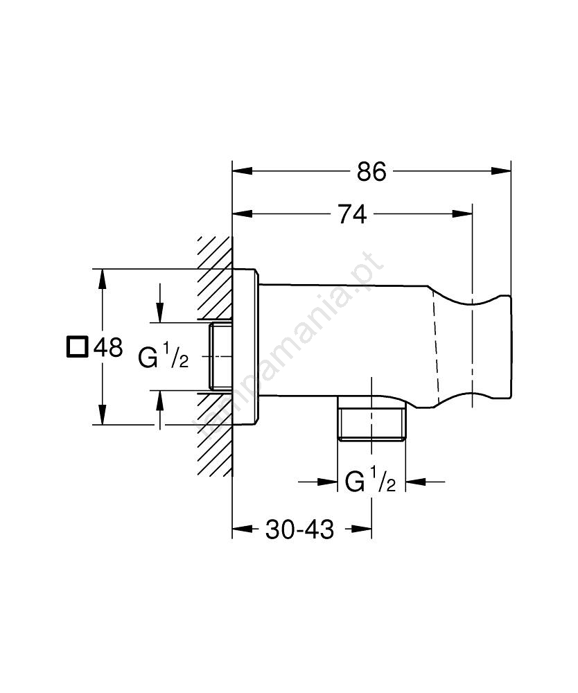 • Conector de parede com suporte de duche integrado para uma solução elegante e funcional.