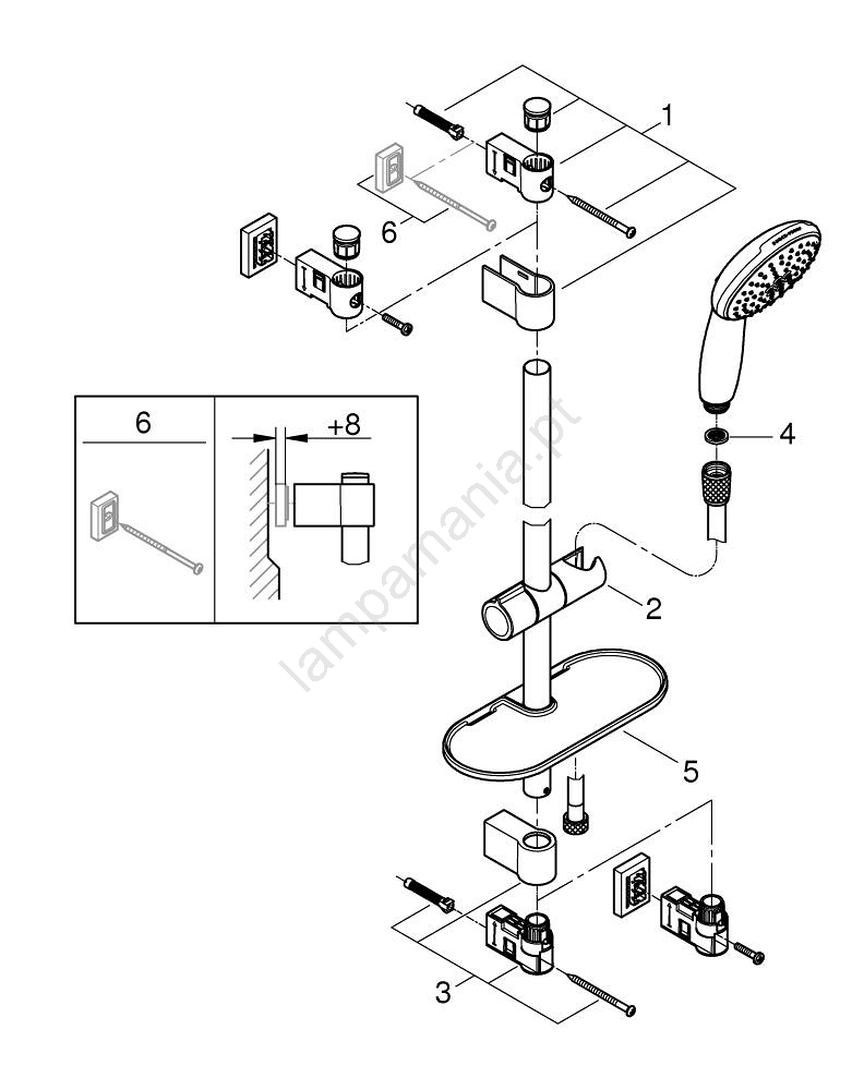 • Possibilidade de montagem com parafusos (incluídos na embalagem) ou colagem (a cola GROHE QuickGlue S 41 247 000 é vendida separadamente, são necessárias 2 unidades).