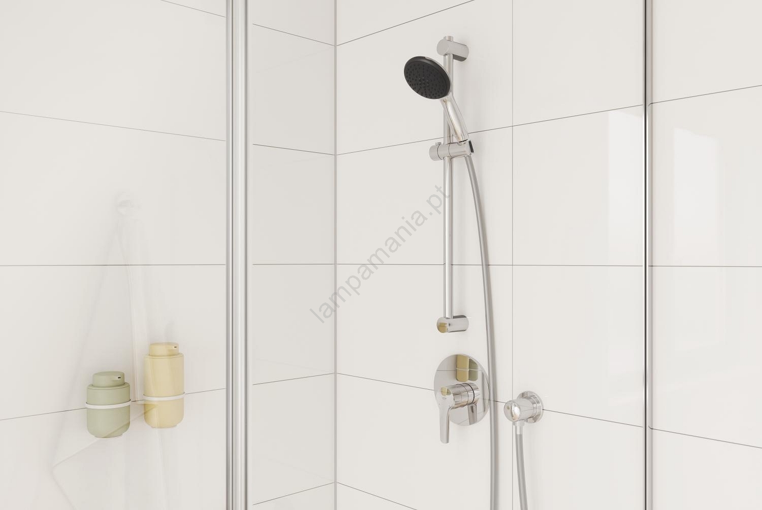 • O suporte deslizante ajustável permite regular confortavelmente a altura da ducha.