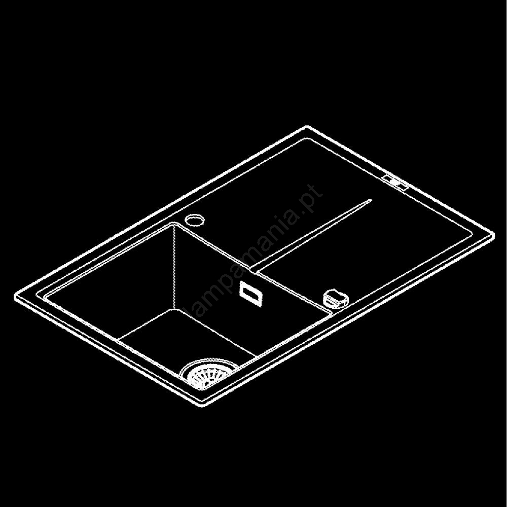 • As dimensões totais da cuba são 780 x 500 mm, com uma bacia de 347 x 440 x 205 mm.