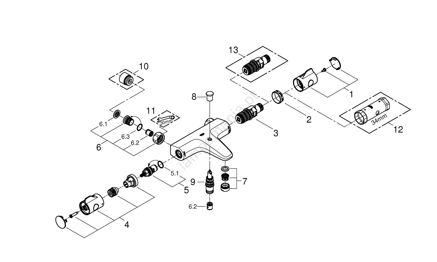 GROHE 34754000 - Misturador termostático para banheira GROHTHERM 800 DN 15 cromado brilhante