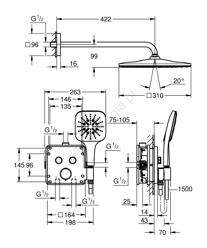 Cabeças de chuveiro, Casa de banho, Conjuntos de duche, Conjuntos de duche, Grohe, Marcas, Torneiras, Torneiras de duche, Torneiras embutidas, Torneiras termostáticas
