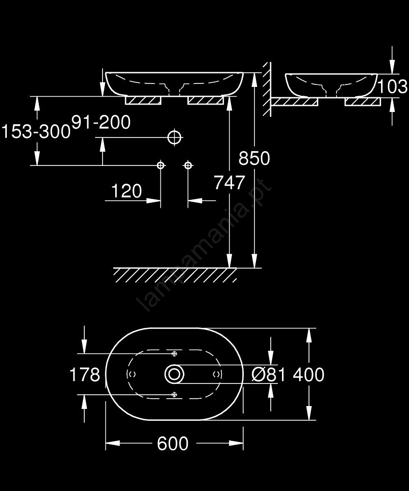 GROHE 3960800H - Lavabo sobre bancada ESSENCE 600 × 400 mm cerâmica/branco
