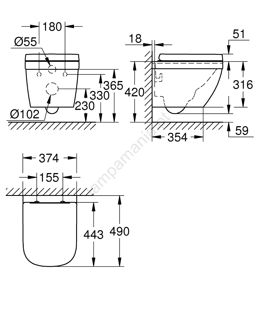 GROHE 39693000 - Sanita suspensa compacta EURO CERAMIC com Triple Vortex 53 l, acabamento em cerâmica branca