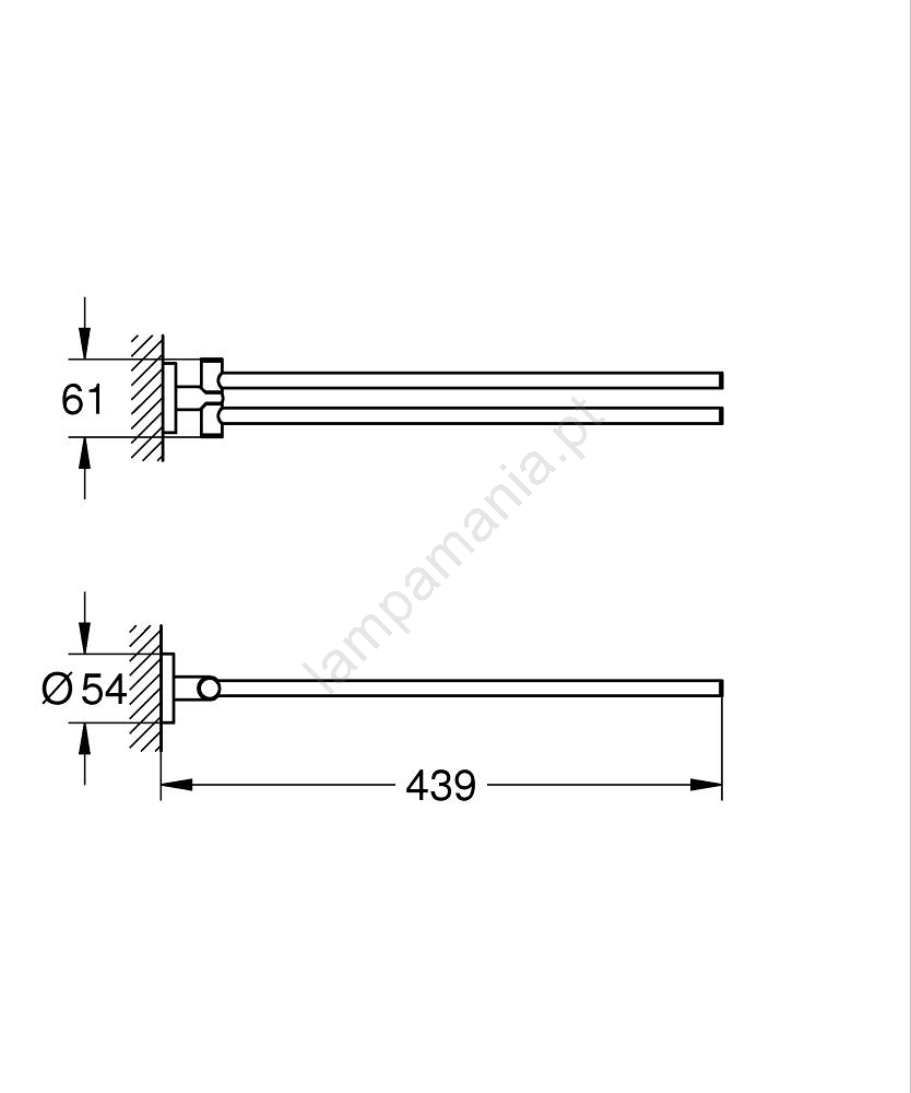 • Comprimento total de 439 mm oferece espaço suficiente para pendurar toalhas.