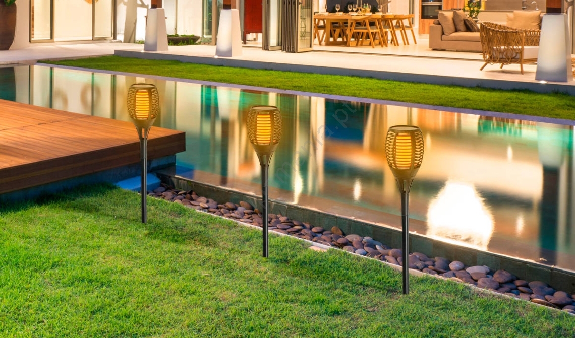 • Instalação muito simples - com haste e estaca, a luminária é cravada no local escolhido.