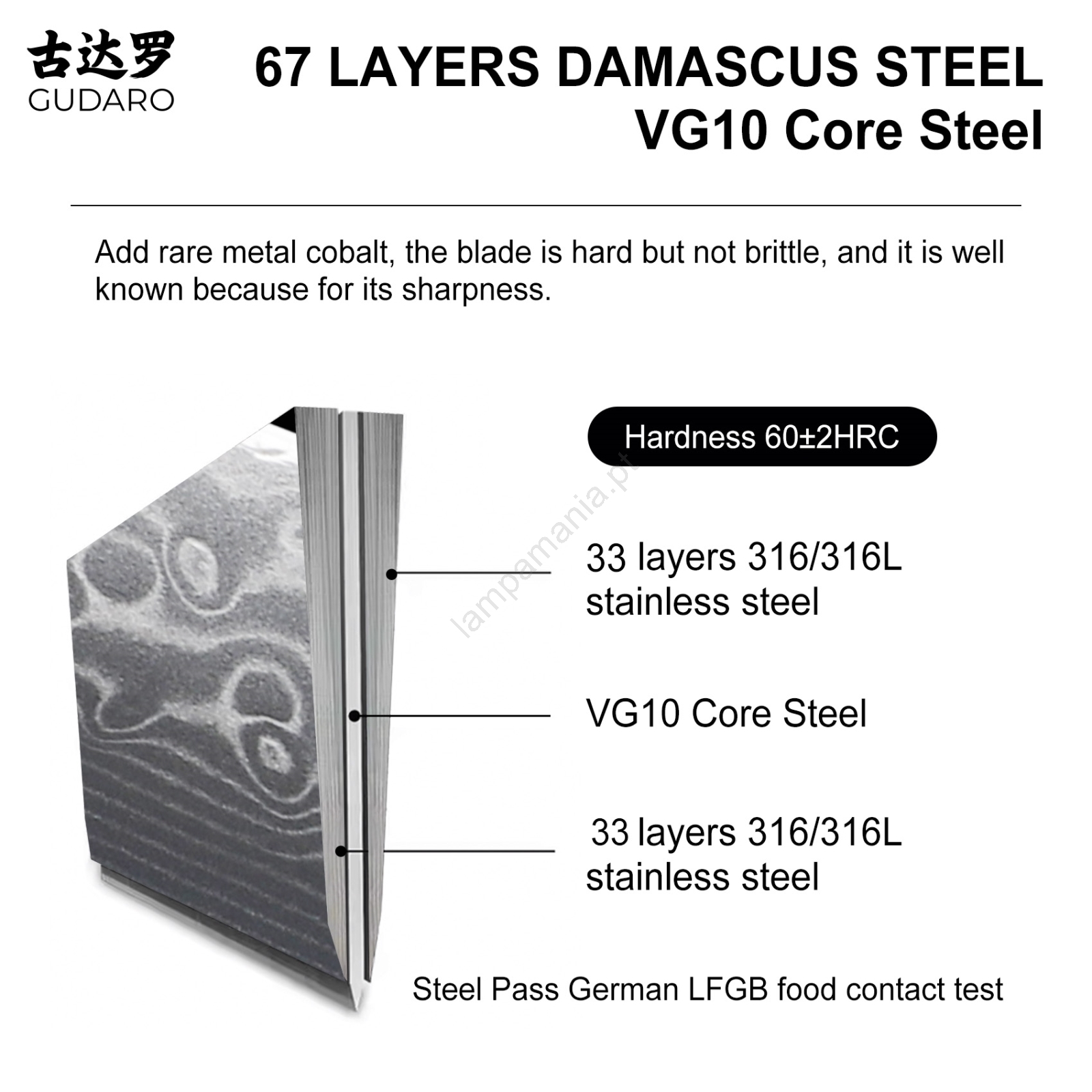 Gudaro - Faca Santoku de cozinha KENSHO 7", em aço damasco de 67 camadas, comprimento 17,5 cm