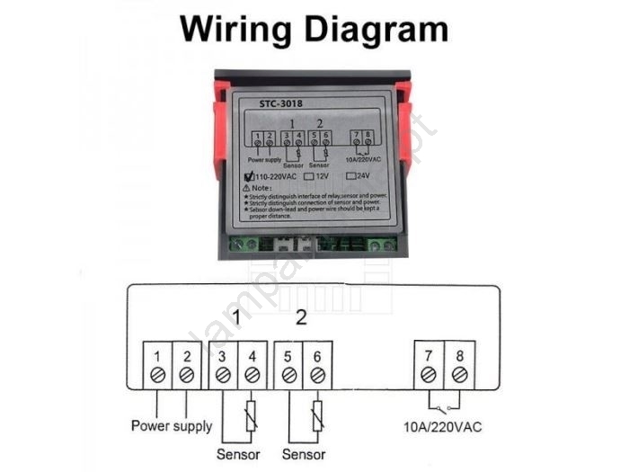 • Termostato digital duplo STC-3018 com um circuito, relé de saída e sonda de temperatura externa.