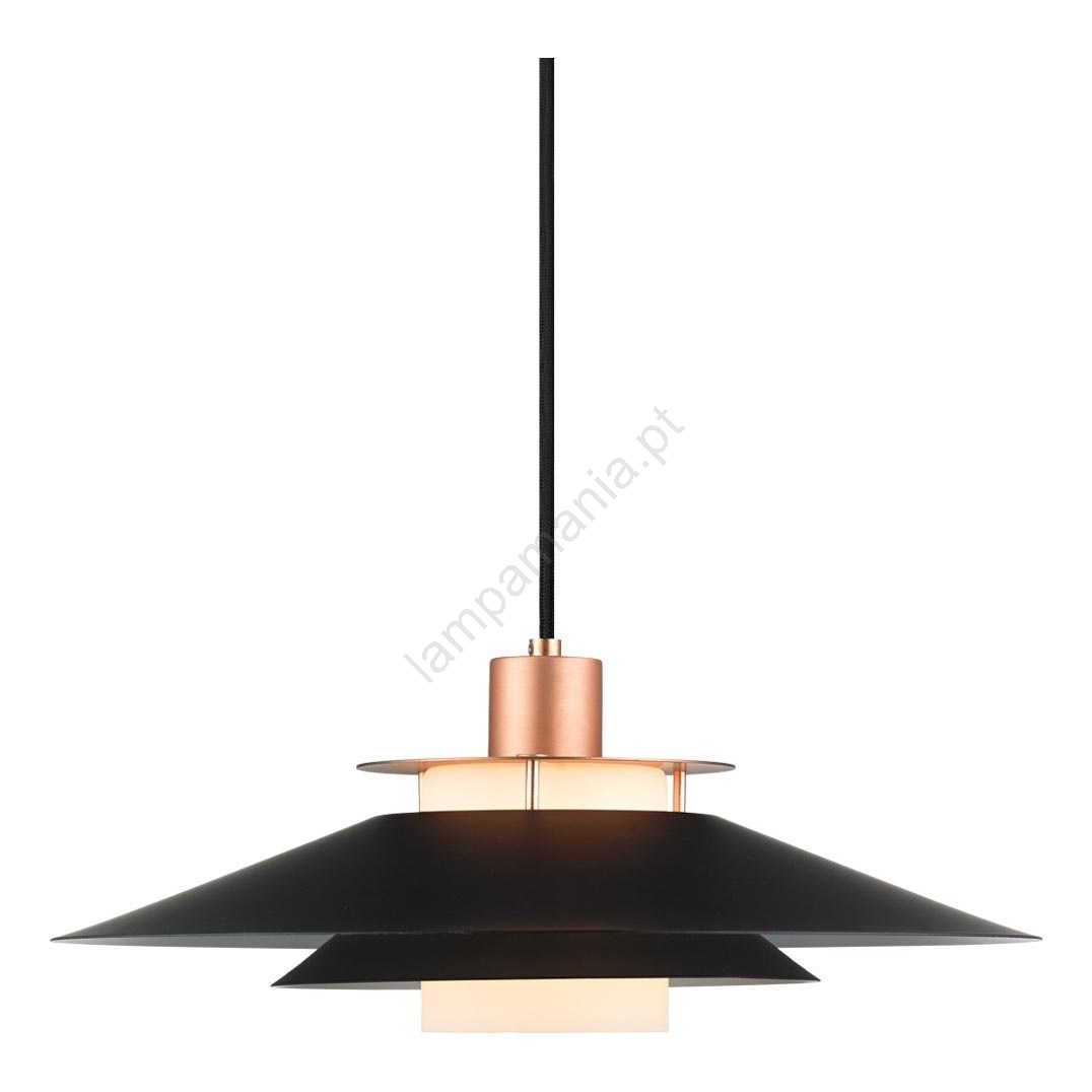 Halo Design 990785 - Lustre RIVOLI suspenso por cabo, 1xE27/40W/230V, diâmetro 40 cm, preto/cobre caracteriza-se por um design agradável e funcional.  Uma lâmpada com casquilho E27 é adequada para a iluminação Aqui, pode comprar outras lâmpadas a preços vantajosos. Terá um complemento interessante para a sua casa.