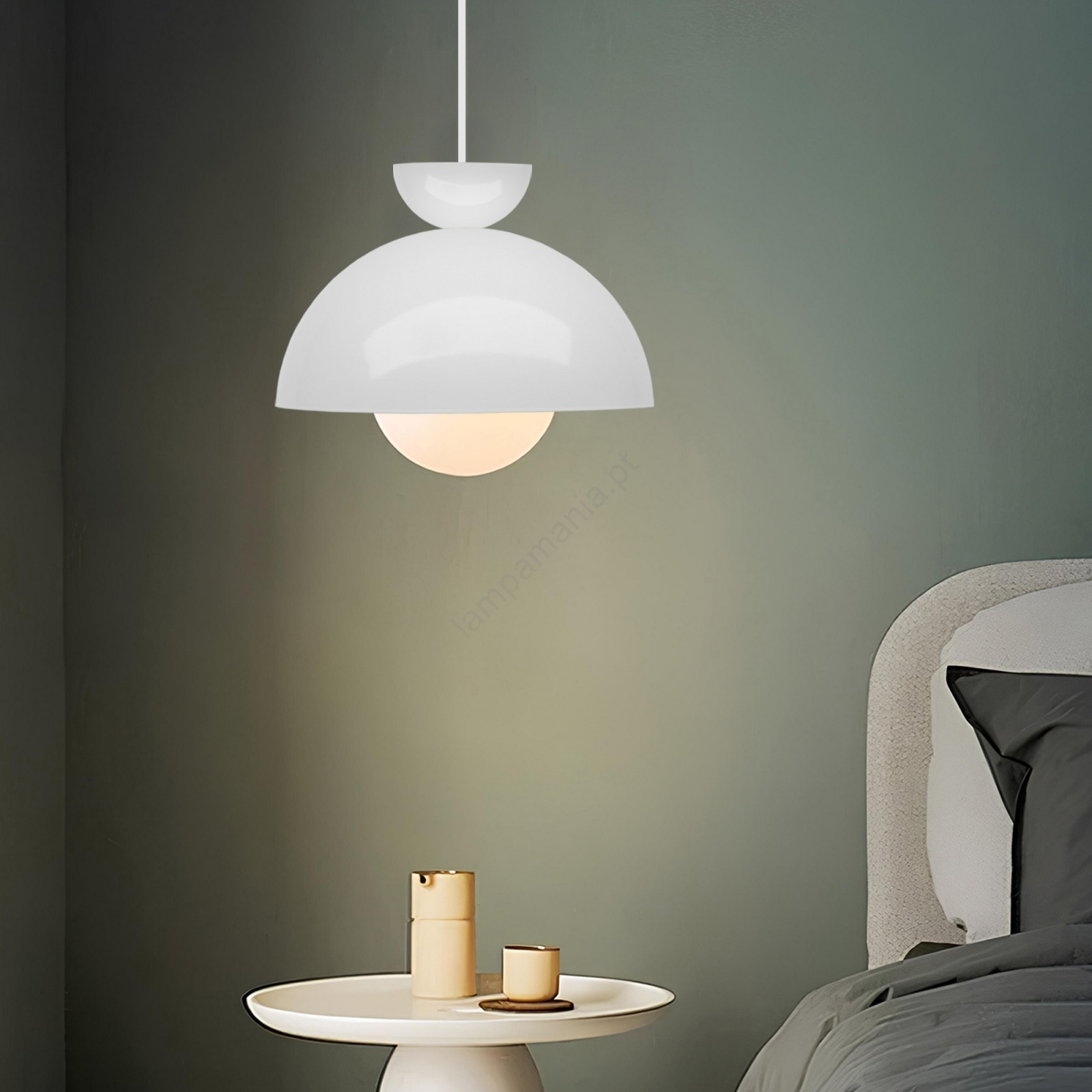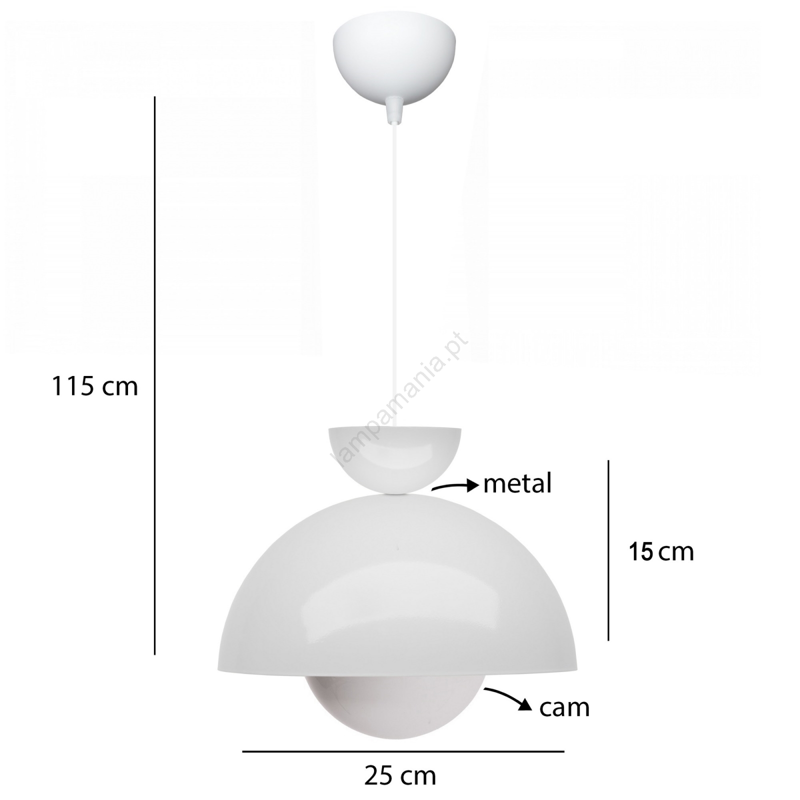 Lustre suspenso por cabo SALVA 1xE27/15W/230V branco caracteriza-se por um design agradável e funcional.  Uma lâmpada com casquilho E27 é adequada para a iluminação Aqui, pode comprar outras lâmpadas a preços vantajosos. Terá um complemento interessante para a sua casa.