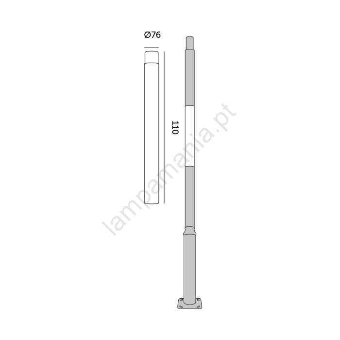 • Diâmetro da haste: 7,6 cm.