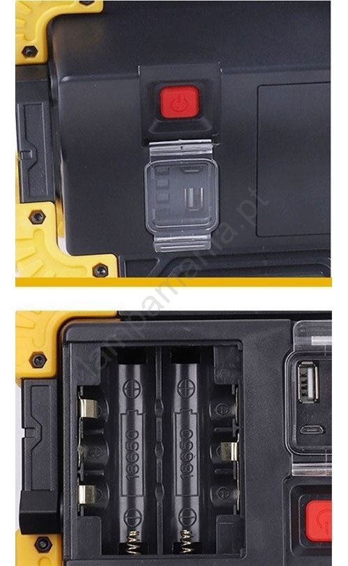 • Com alimentação combinada 2x Li-Ion 18650 ou 3xAA (pilha comum).