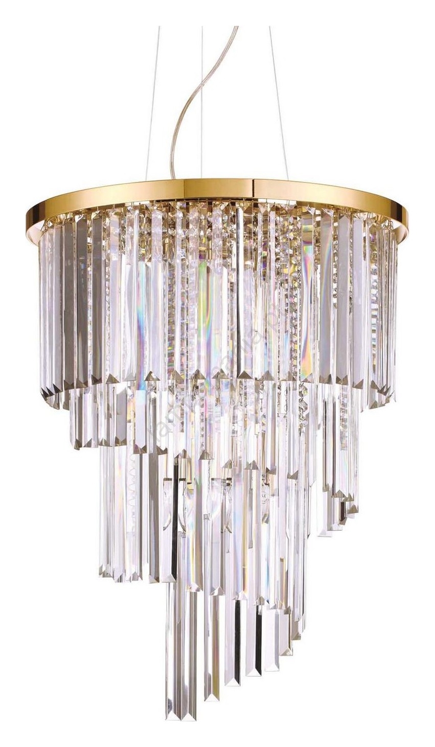 Ideal Lux - Candeeiro suspenso de cristal CARLTON 12xE14/40W/230V diâmetro 50 cm dourado caracteriza-se por um design agradável e funcional.  Uma lâmpada com casquilho E14 é adequada para a iluminação Aqui, pode comprar outras lâmpadas a preços vantajosos. Terá um complemento interessante para a sua casa.