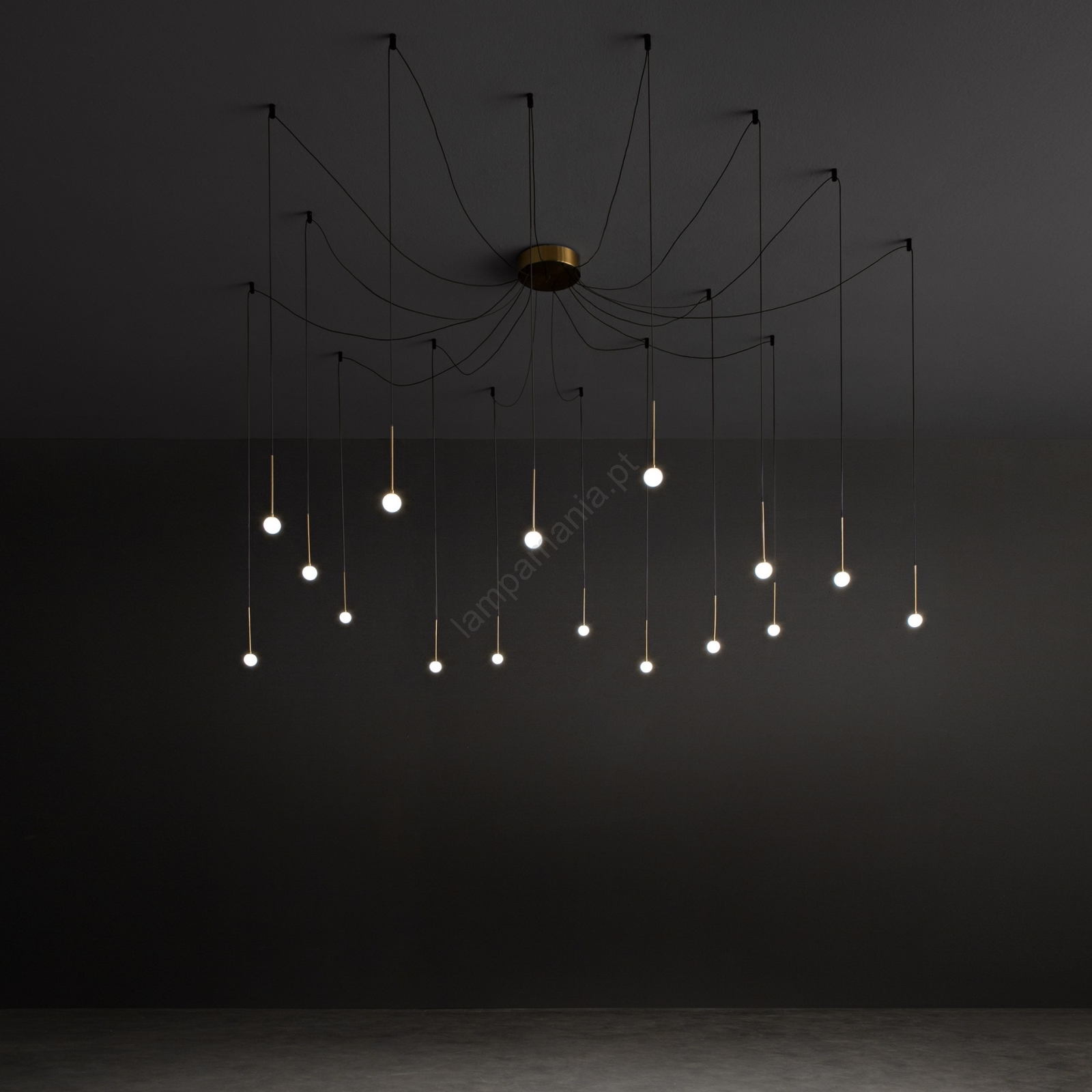 Ideal Lux - Lustre LED suspenso por cabo LUCCIOLA 16xLED/16W/230V CRI 90, design aranha com acabamento em latão